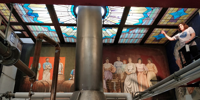 | Stained glass ceiling and iconic artwork in the Pottsville brewhouse |